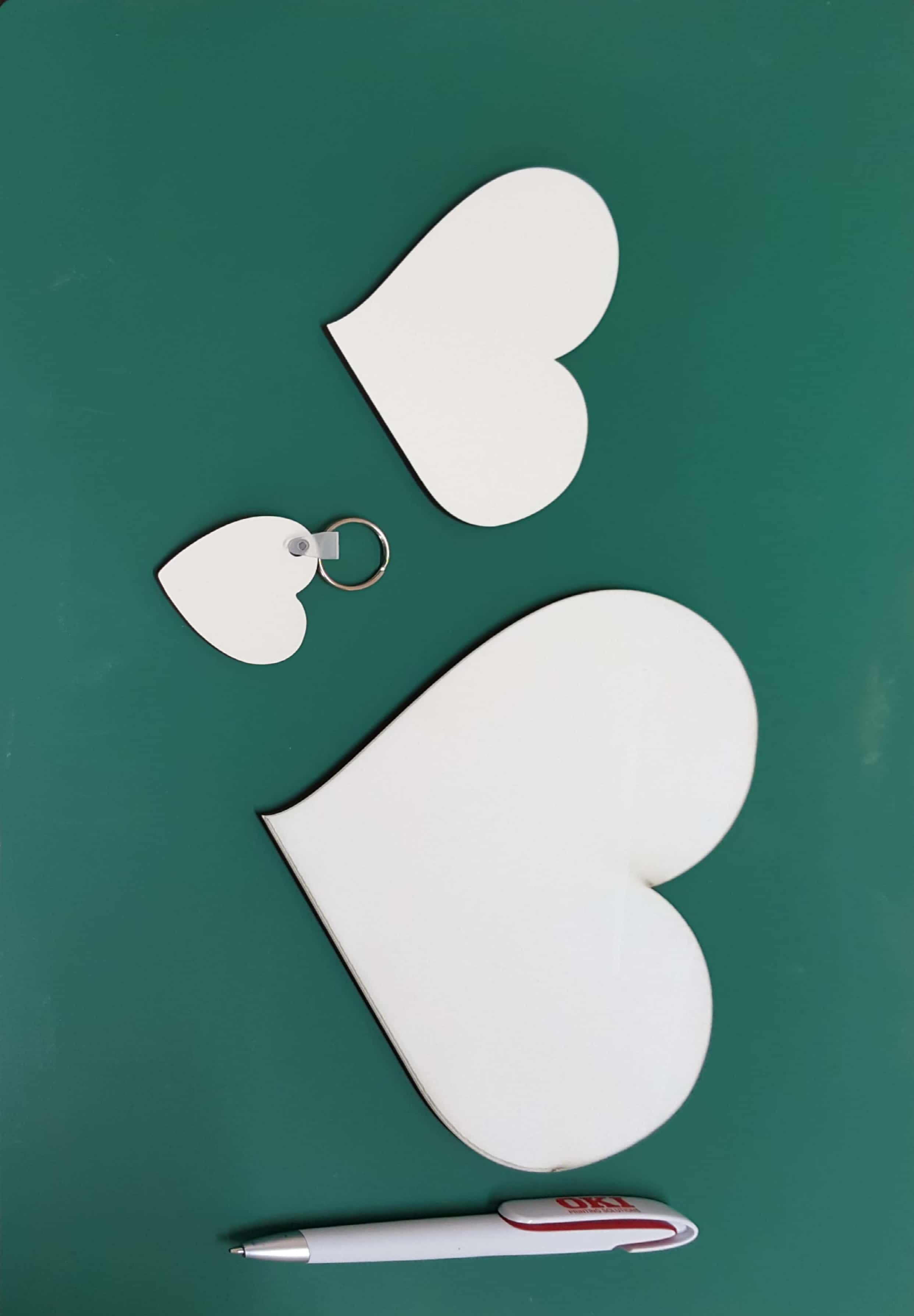 לוח עץ MDF בצורת לב עובי 3 מ"מ להדפסת סובלימציה עם ציפוי ניילון(חובה להסיר את הניילון לפני ביצוע).