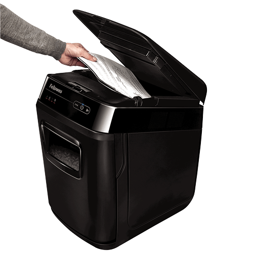 מגרסת נייר FELLOWES AutoMax130 תוכננה ועוצבה לעבודה רבה תוך שהיא מסוגלת לגרוס עד 130 דף בבת אחת.