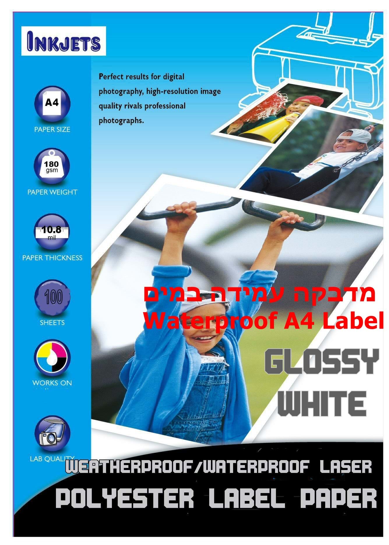 מדבקה  עמידה במים מפוליאסטר למדפסת לייזר המדפיסה בצבע שחור,ולמדפסת לייזר או מכונת צילום צבעונית.