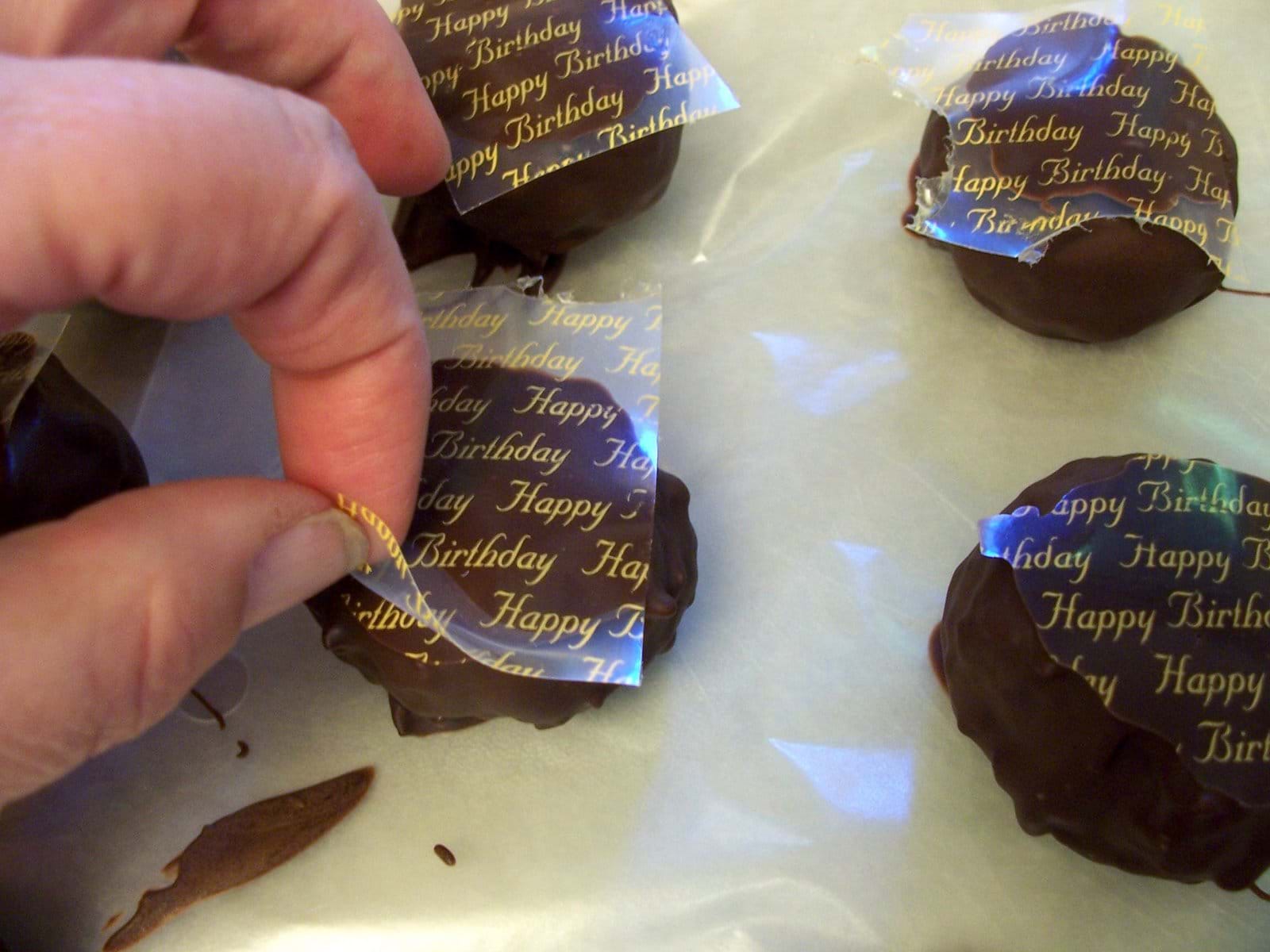 עוגיות פרלינים וכדו,כמו בתמונות למטה מתבצעת בדרך הבאה:מצפים את הפריט עלו אנו רוצים לשים גרפיקה