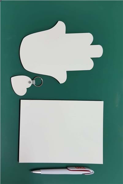 לוח עץ MDF בצורת חמסה עובי 3 מ"מ להדפסת סובלימציה עם ציפוי ניילון(חובה להסיר את הניילון לפני ביצוע).