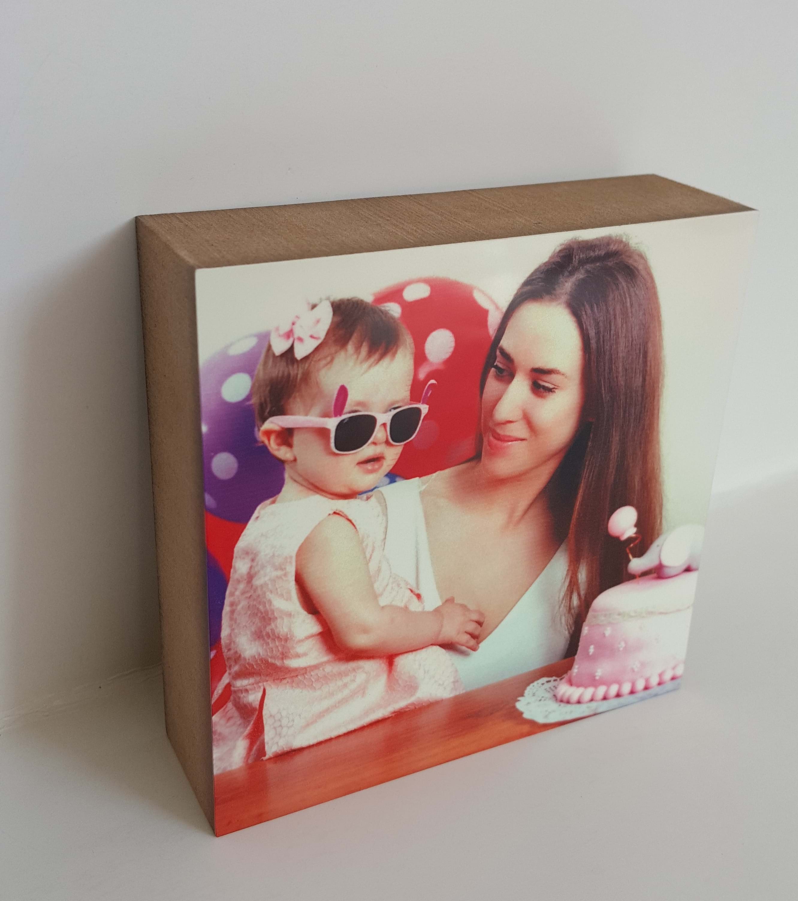 הדפסה על בלוק עץ 10X10 סמ תמונה על בלוק עץ,תמונה איכותית מאוד ניתנת להנחה בסלון בבית,תמונה של הילדים\משפחה\חברה\אישה במשרד,