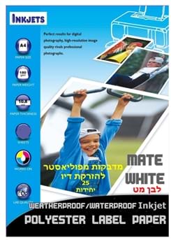 מדבקות עמידות מפוליאסטר בצבע לבן מט למדפסת הזרקת דיו 25 מדבקות פוליאסטר עמידות לבן מט להזרקת דיו 99 ₪ הוסף לסל